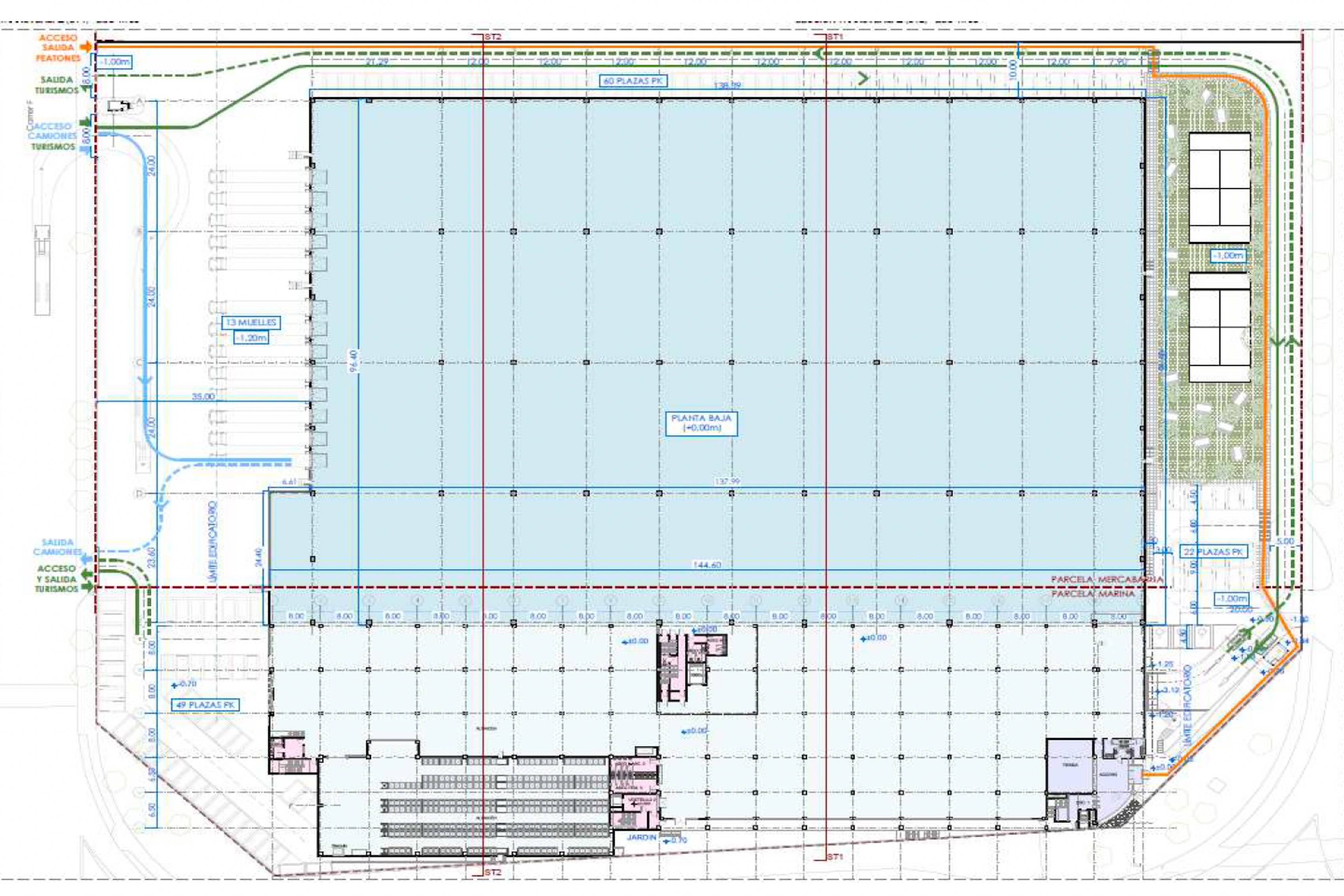 La nave cuenta con una superficie construida de 28.196 m² distribuida en 18.965 m² de planta baja, planta 4.704 m² de planta primera, 1.416 m² de planta segunda y 3.075 m² de sótano.